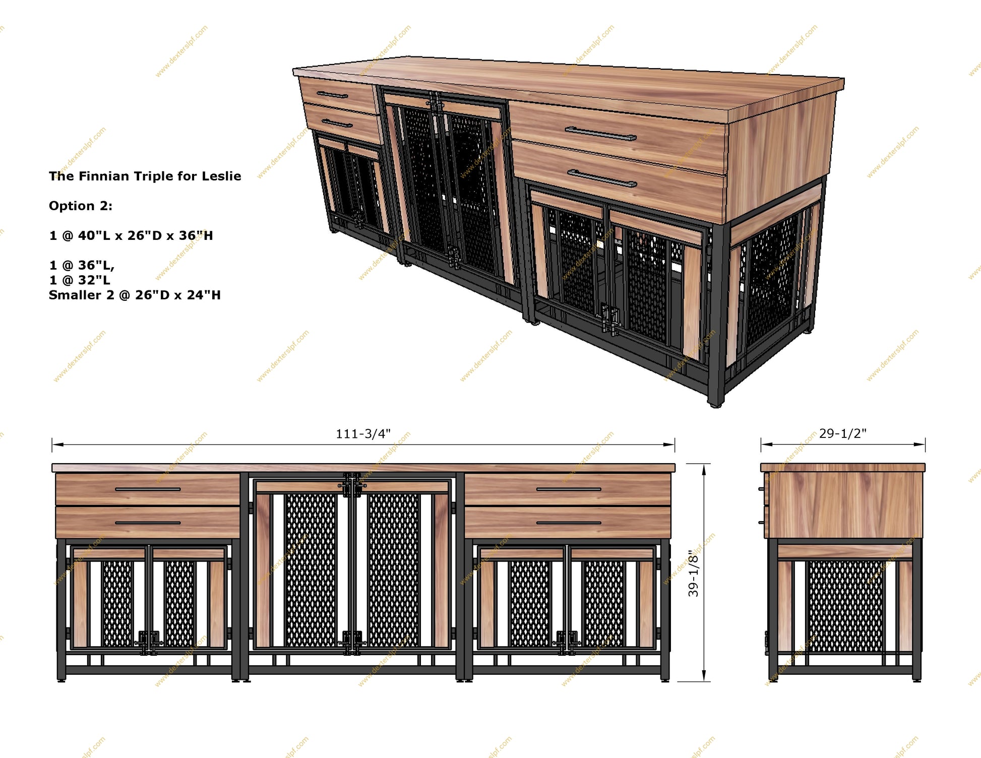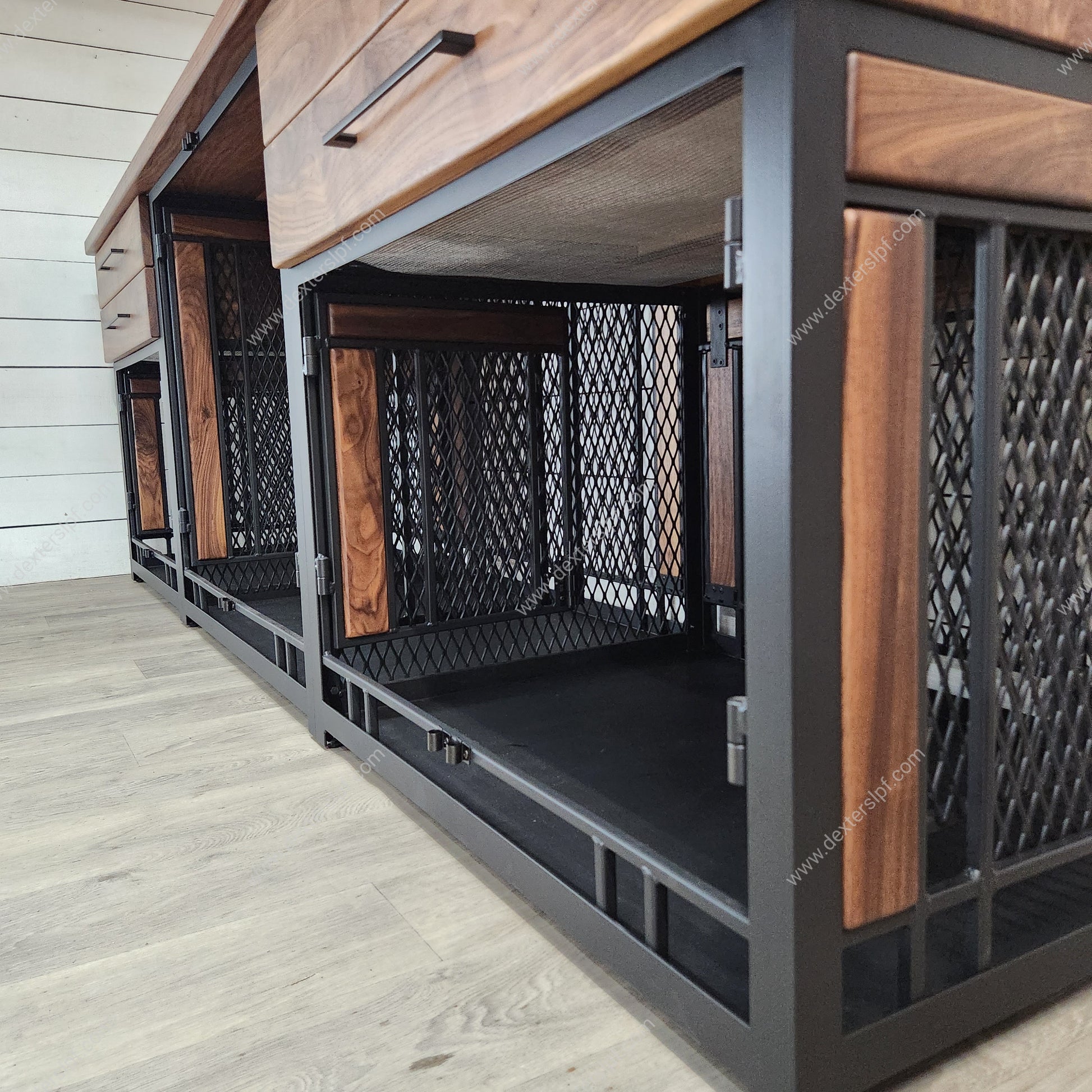 Elevate your home decor and provide your pets with a cozy retreat by ordering the Finnian Triple Custom Dog Crate Furniture today! Each piece is made to order, ensuring a perfect fit for your space and style.