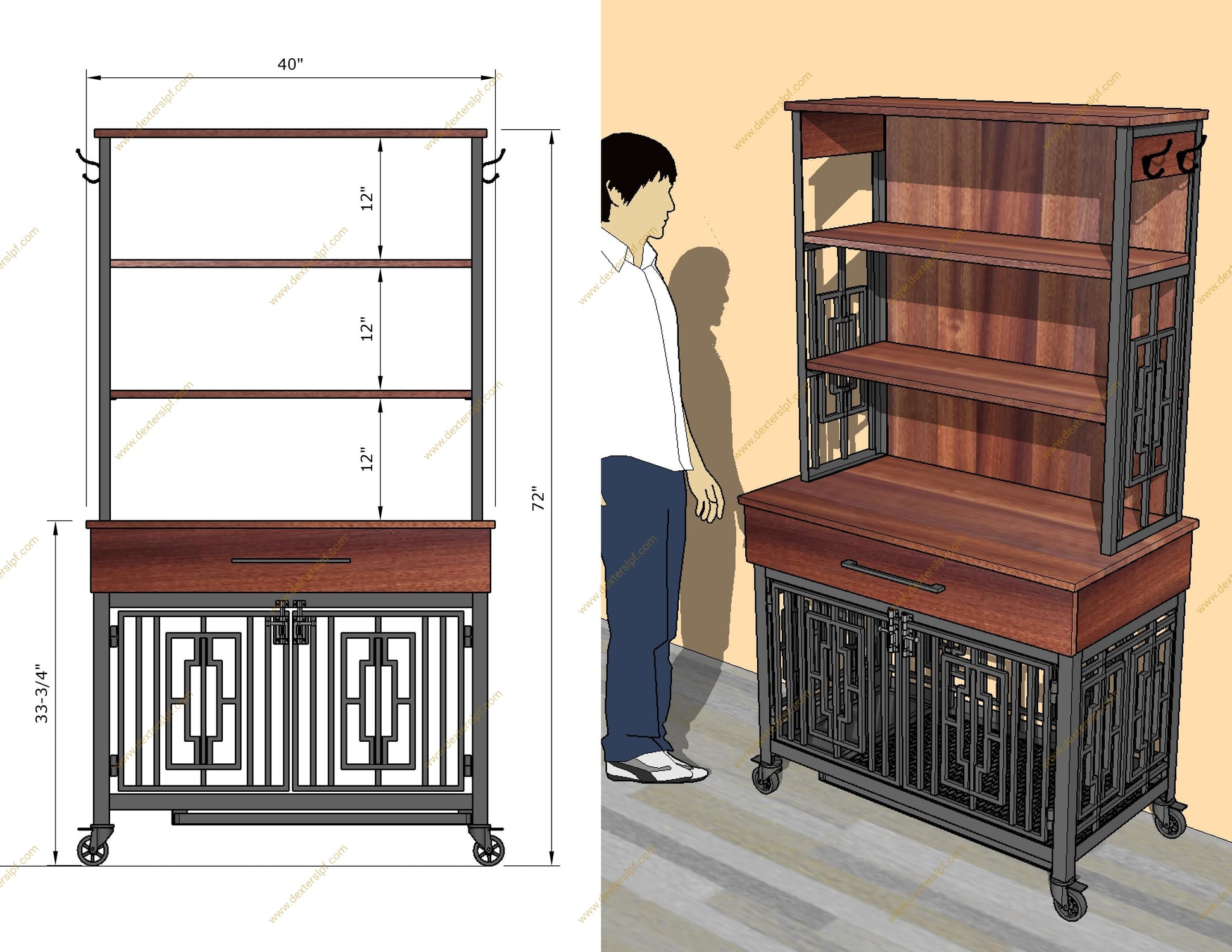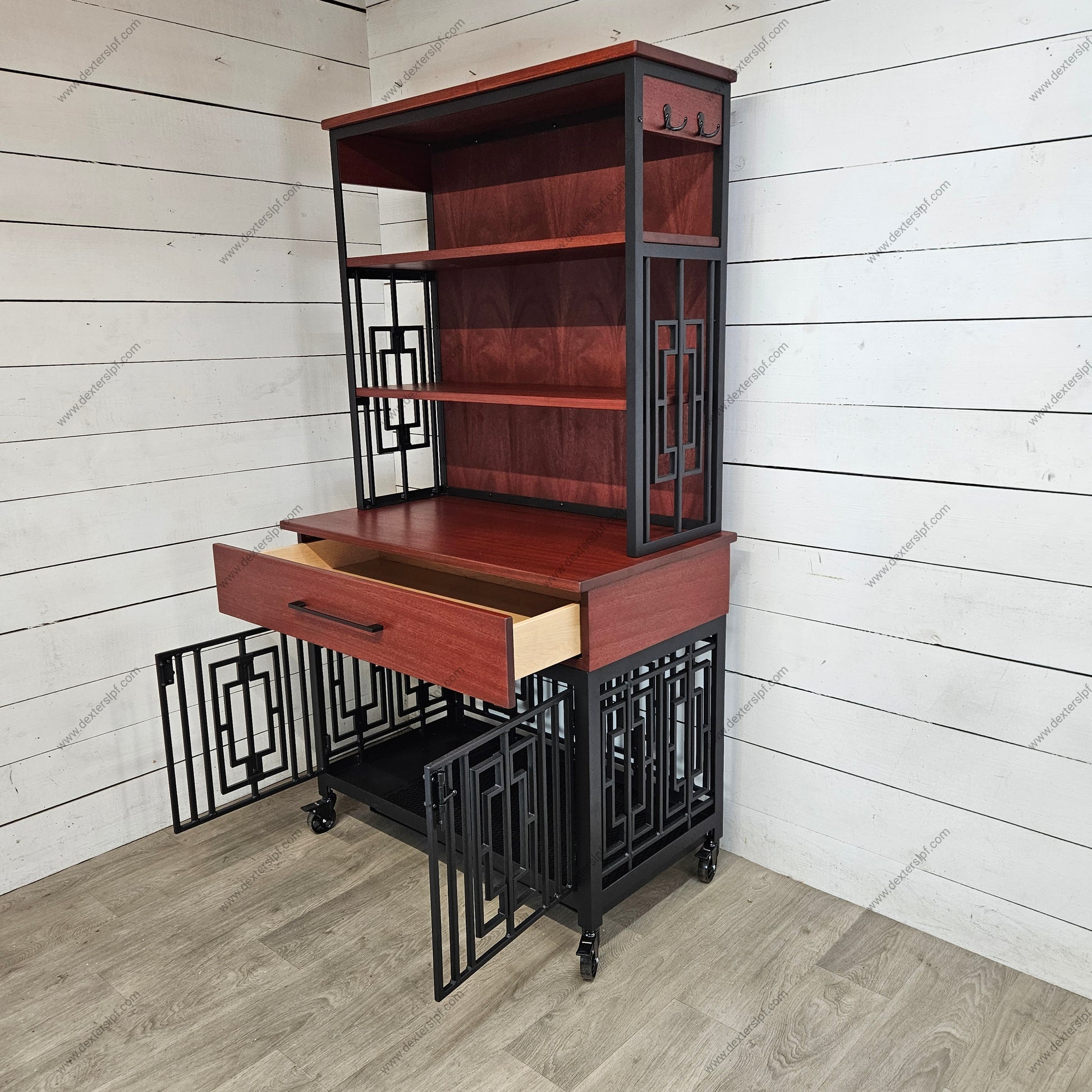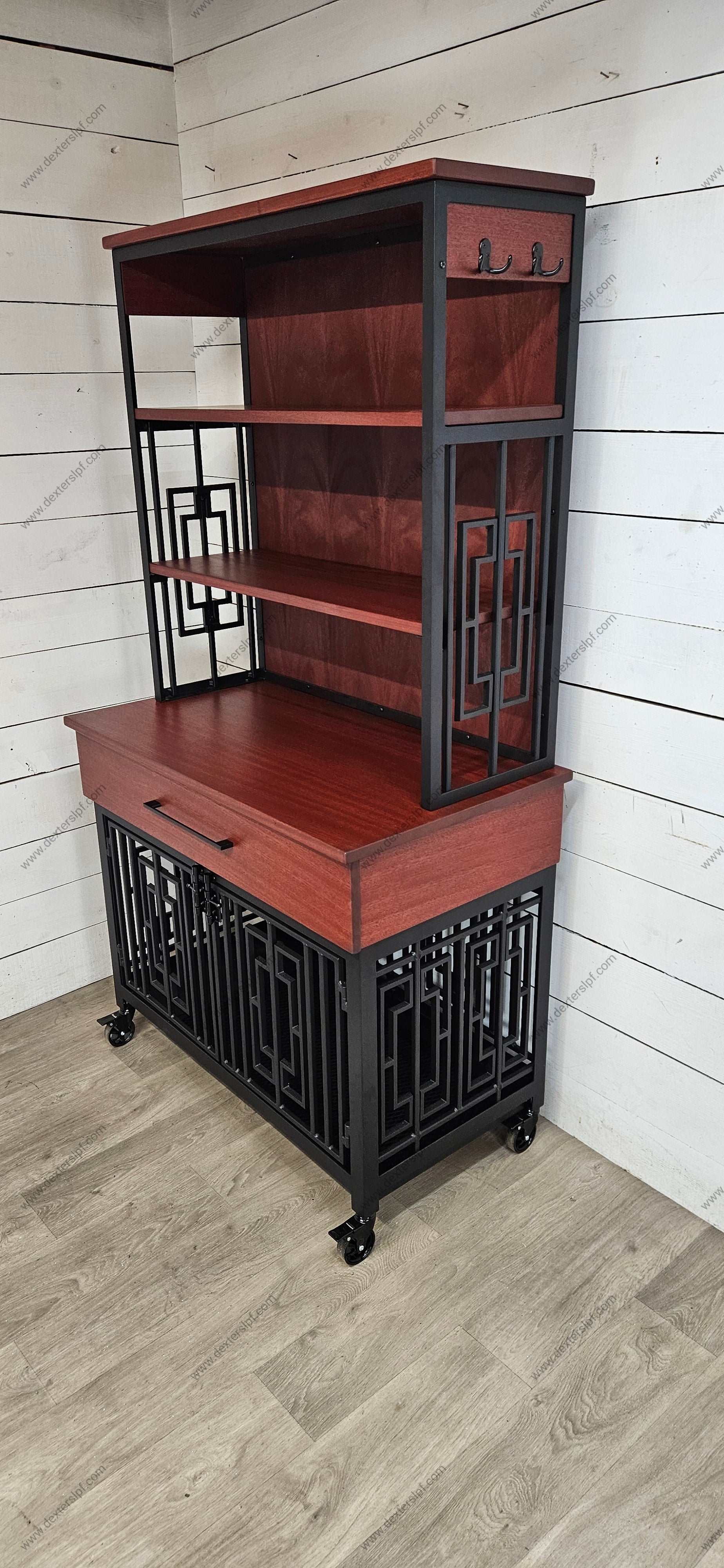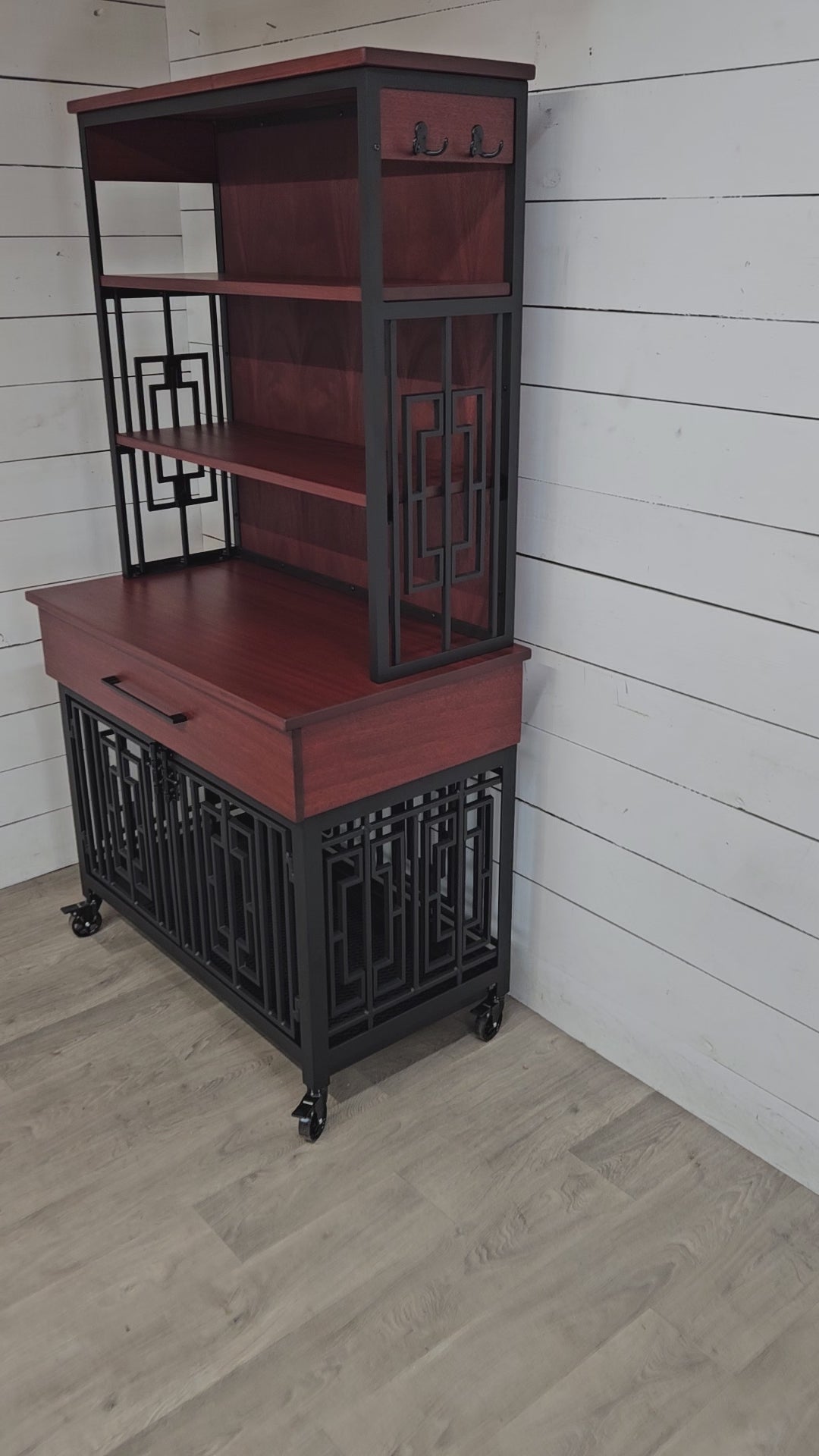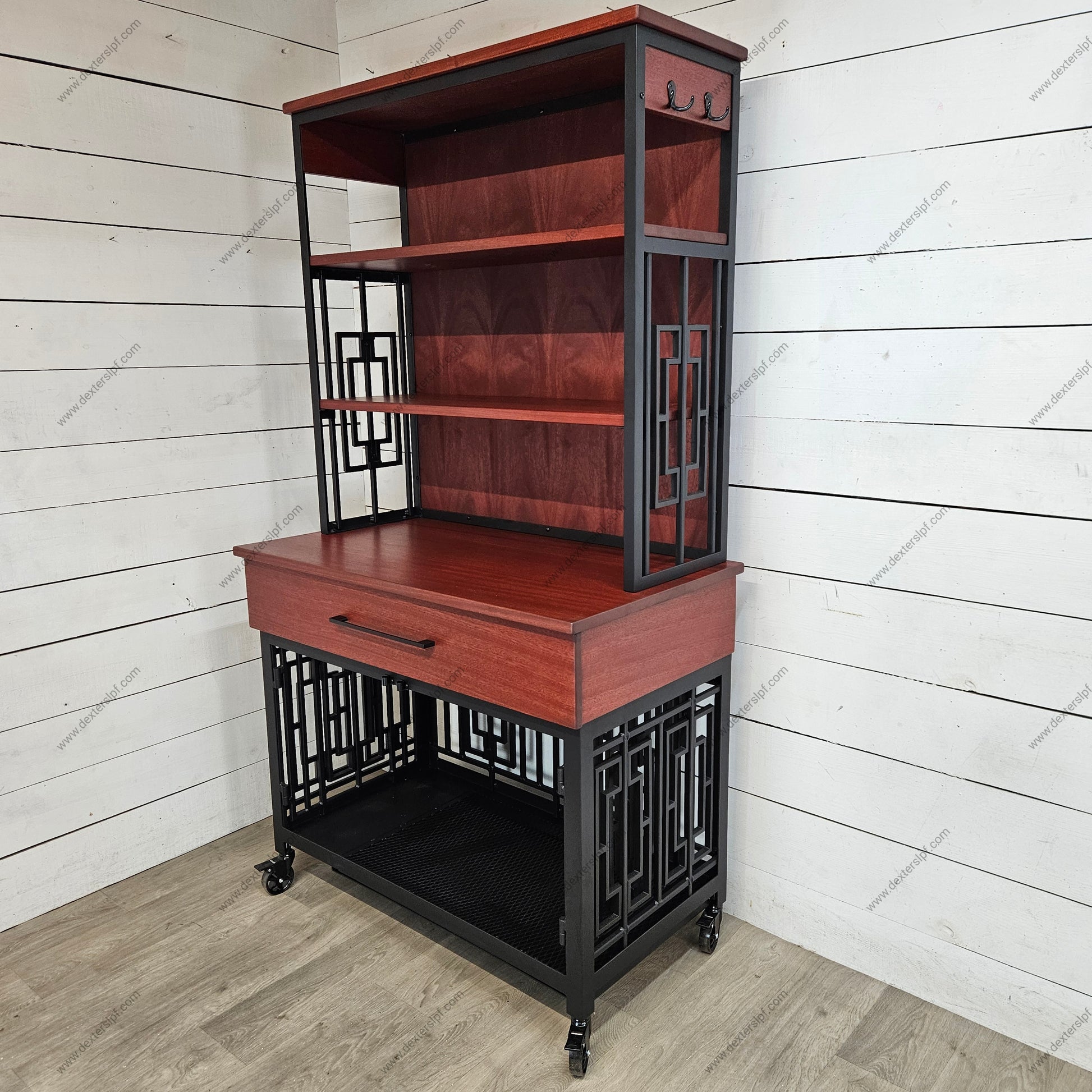Layla Medium Open Shelf Hutch | Custom Dog Crate Furniture with Lockable Wheels